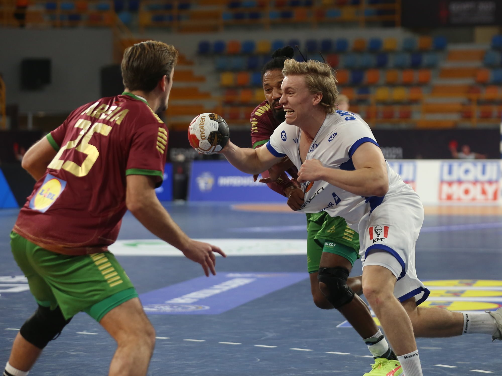 Strákarnir okkar hófu leik á HM fyrr í kvöld en fyrstu andstæðingarnir voru Portúgal. Þriðji leikur liðanna á 8 dögum og nú var allt undir í Kaíró. Íslenska liðið hóf leikinn af miklum krafti og skoraði fyrstu tvö mörkin en jafnræði var með liðunum í fyrri hálfleik. Þegar liðin fengu til búningsklefa var staðan 10-11…